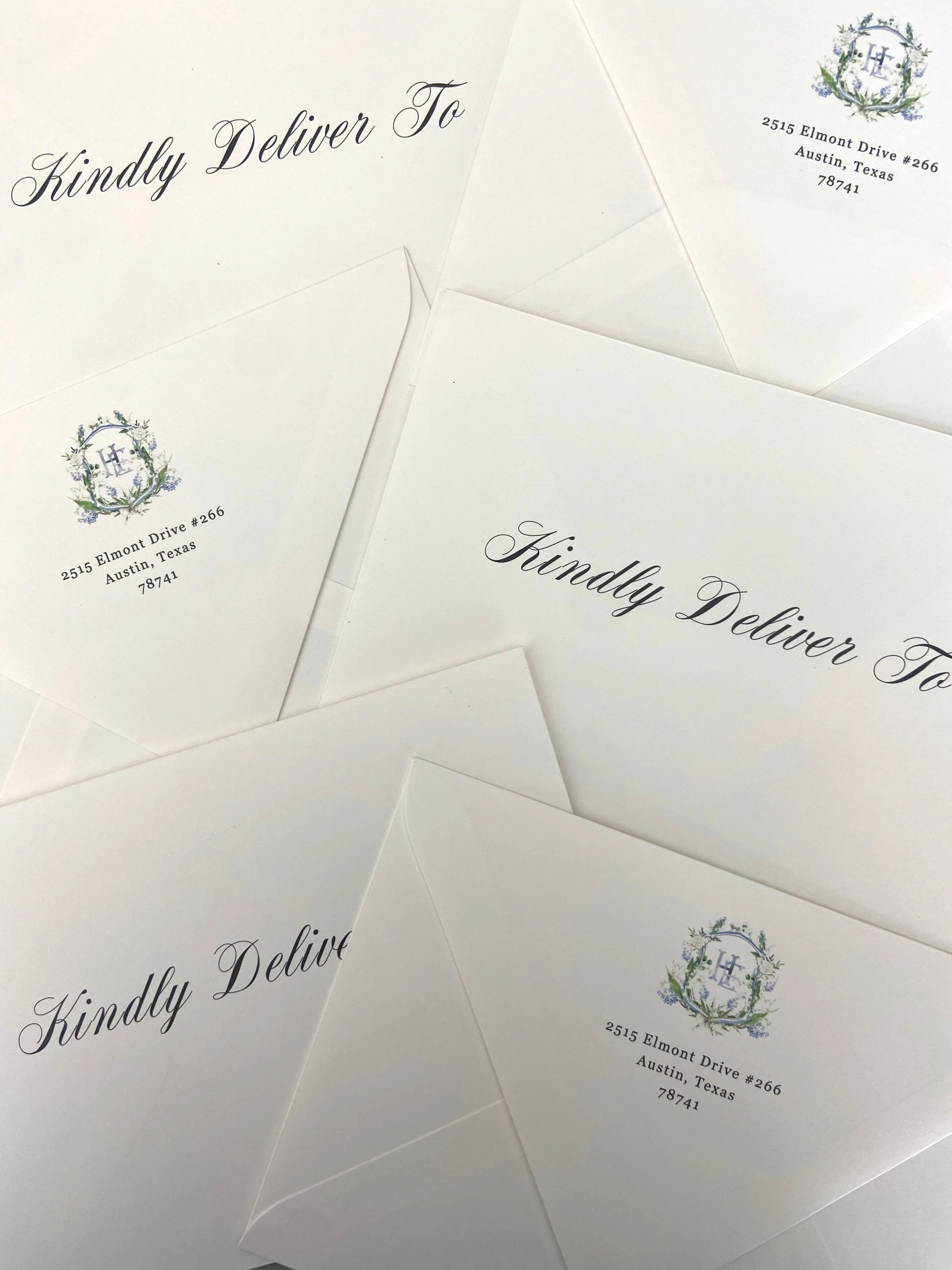 The fun stuff! Bring your stationery to life with as many custom accouterments as you’d like.